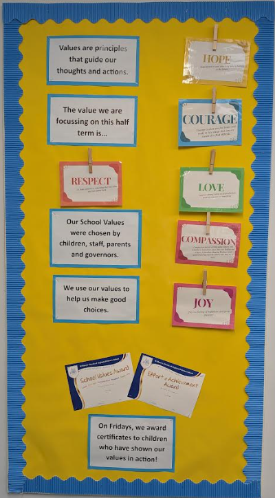 We work together to promote our shared school values of love, respect, hope, courage, compassion and joy.