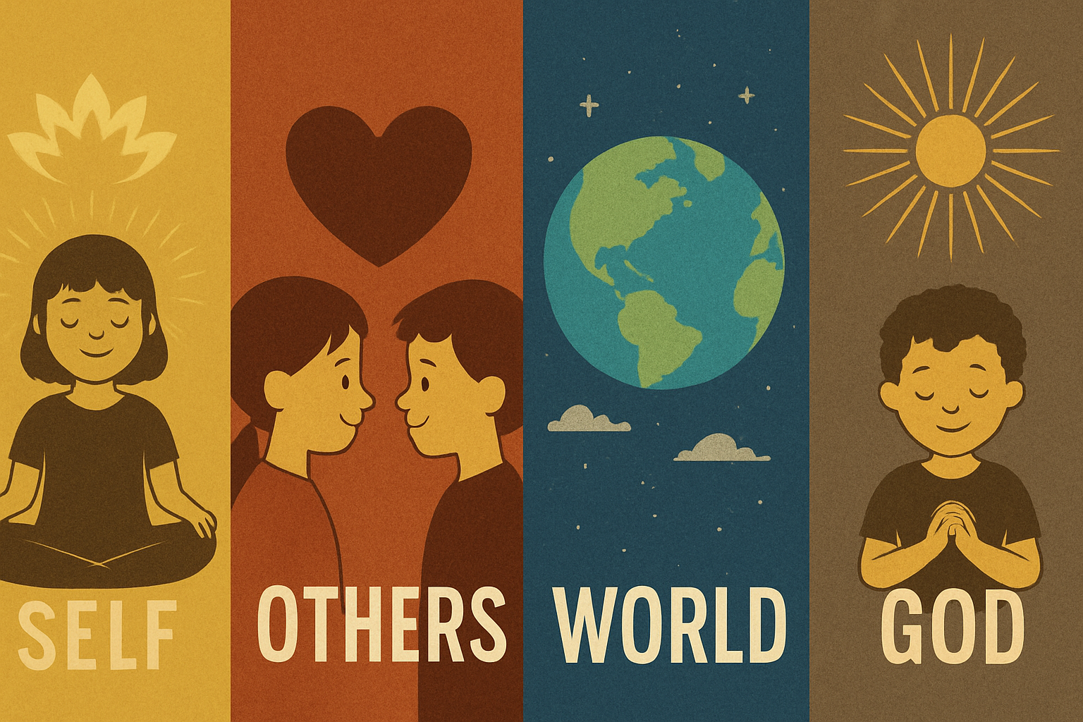 Spirituality is like a light inside us that helps us understand ourselves, care for others, and feel close to something bigger than ourselves – to God.